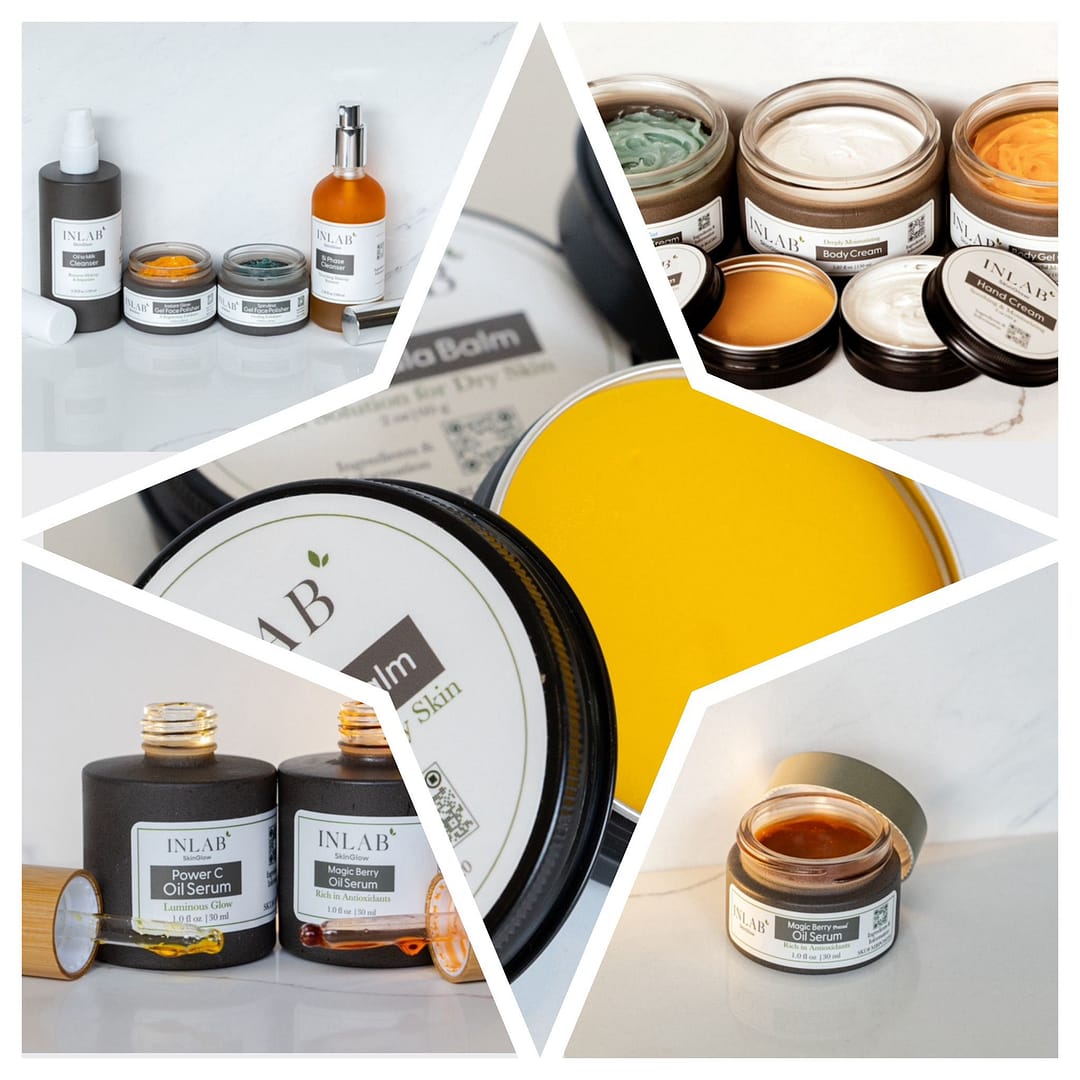 At Inlab SkinGlow, we are devoted to create a line of effective, natural and clean skincare products. Our commitment to quality is evident in our meticulous small-batch formulation process and the integration of premium star ingredients, ensuring the highest standards of cleanliness. Our products are designed to promote self-care, nurturing both radiant skin and emotional well-being.